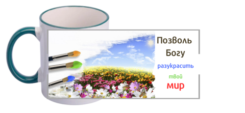 Чашка "Позволь Богу разукрасить твой мир"/ цветная внутри и ручка темно зелена