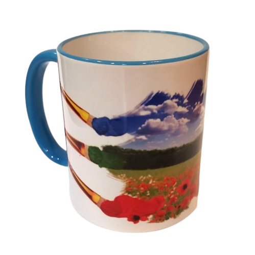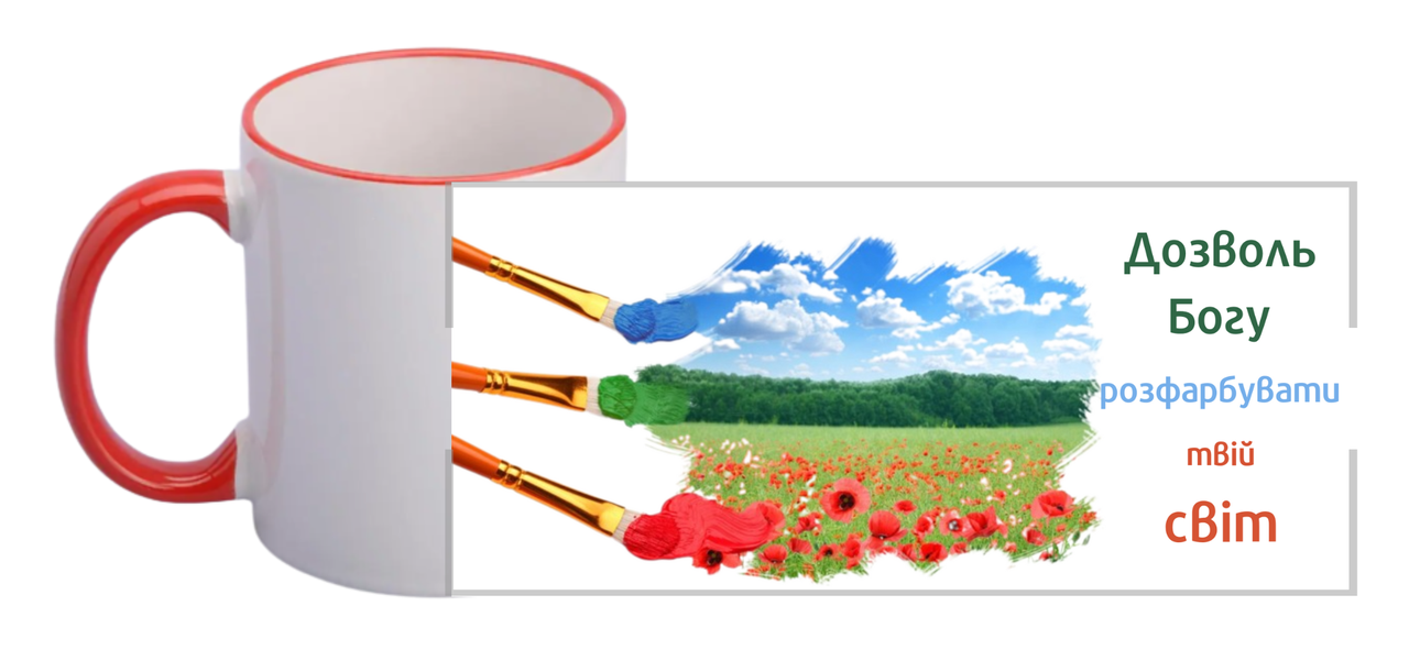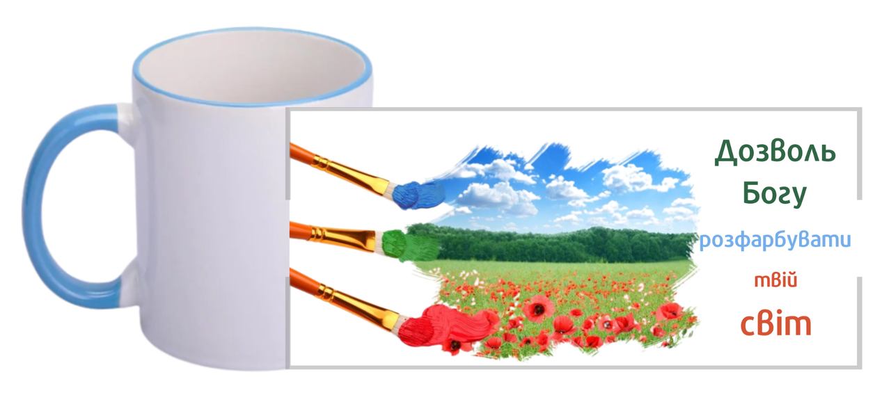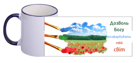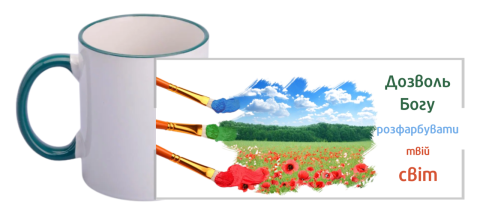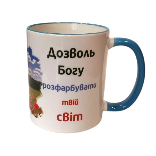 Чашка "Позволь Богу разукрасить твой мир"/цветной ободок и ручка / на украинском