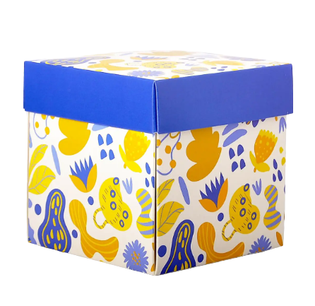 Упаковка для чашки 330 мл из картона с крышкой (желто-голубая)