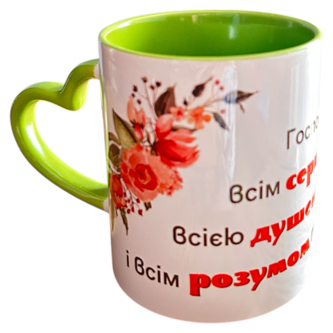 На чашках написані слова з Писання, які можуть підбадьорити людину у скрутну хвилину. Зображення на чашці нанесено методом сублімації, тому малюнок з часом не тьмяніє, а зберігає свій блиск навіть після тривалого використання. Можна використовувати в посудомийній машині.