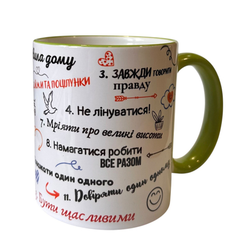 На чашках написані слова з Писання, які можуть підбадьорити людину у скрутну хвилину. Зображення на чашці нанесено методом сублімації, тому малюнок з часом не тьмяніє, а зберігає свій блиск навіть після тривалого використання. Можна використовувати в посудомийній машині.