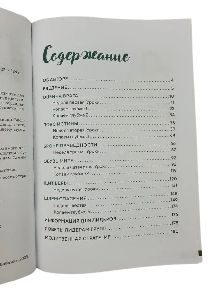 Вместе мы изучим элементы обмундирования, необходимого для победы, чтобы одержать ее гарантированно. Каждую неделю мы будем использовать секретное оружие, предоставленное нам Самим Богом для предотвращения атак дьявола.
